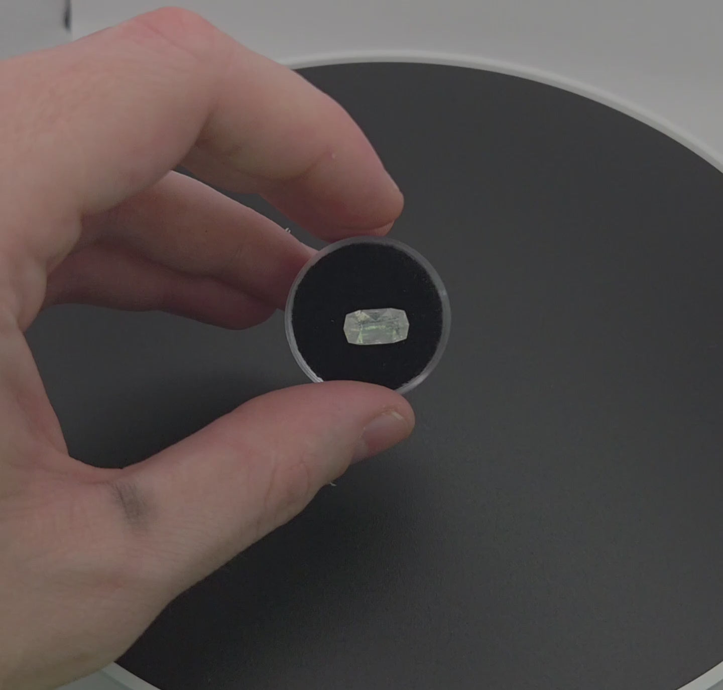 Weighing 1.92ct and measuring 11.5x6.14mm, this moonstone showcases internal fractures and mineral inclusions that create its distinctive character. The stone displays vibrant blue adularescence punctuated by rare orange flashes, a result of light interacting with its layered feldspar structure. These natural moonstone inclusions contribute to its appeal among collectors and jewelry designers seeking imperfect stones.